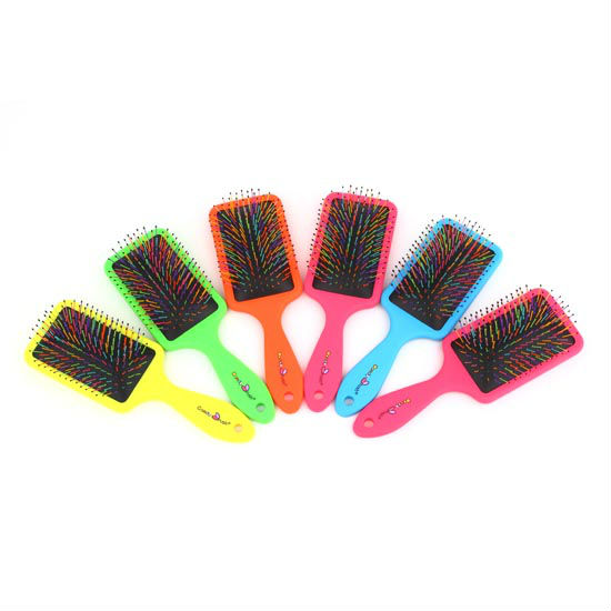 Smooth out tangles and part your locks using this hair brush. Incredibly lightweight for everyday styling, it features a rectangular brush with soft and colorful bristles to impress eyes. The ergonomic handle design further promises convenient hold for everyday use.