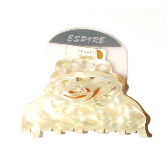 The featuring item is a hair claw for ladies and women. It has a beige in colour with an openwork flower pattern as its main embellishment, which shows a classy and refined style.