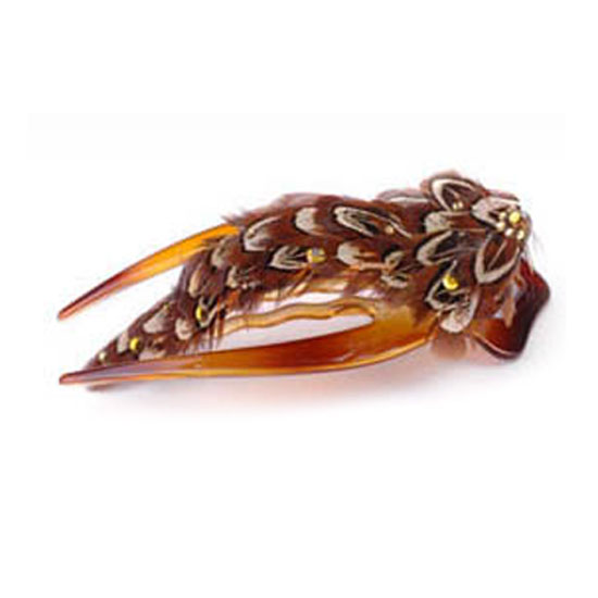 This hair clips offers a quick and easy way to add flair to your hair style. The fashionable hair clip is adorned with feather and twinkling stone accents. The quality hair clip will not cause damage to your hair.