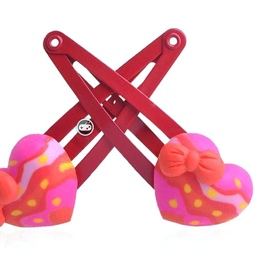 This is a pair of hair clips that comes with an attractive design in bright colors. This pair of hair clips features in a heart shape and with bow ornaments. This pair of hair clips is ideal for different hairstyles.