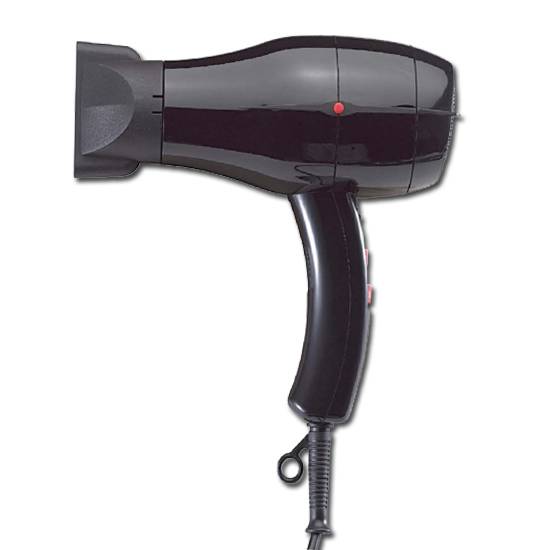 The featuring product is a hair dryer for household use. There is a loop at the end of the handle for hanging. The specially designed air-inlet grill can be detached easily. It is a useful electrical appliance for everyday use.