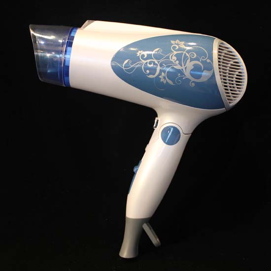 The hair dryer in this picture is built with a powerful fan to produce warm wind. Its handle boosts a foldable design that allows compact storage. This hair dryer is a reliable appliance that is suitable for modern houses and salons.