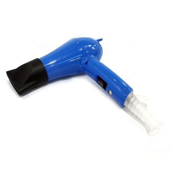 This is a newly-developed mini hair dryer for traveling use with dual voltage. It consumes 1,200 watts of energy with a high-quality DC motor. The foldable handle and hanging loop allow for added functionality.