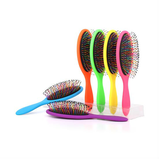 This hairbrush is the ultimate grooming tool you need on your makeup table. The ergonomic handle pairs an oval top with soft bristles to detangle strands. It stimulates blood circulation of hair follicles, while massaging scalp in soothing manner.
