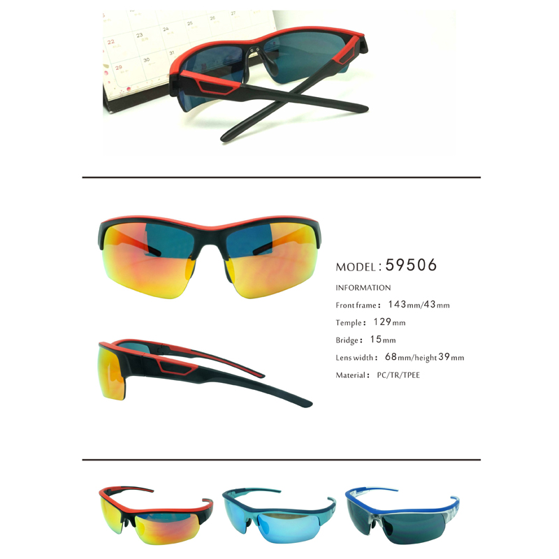 The 59506 model features a unique double injection techniques that injected rubber material on both the front frame and temple arms. The combination of soft and hard materials ensures that the sunglasses are flexible and comfortable to wear. The nose pads are adjustable to fit most face shapes, and the anti-slip rubber on the temple arms keeps the sunglasses securely in place, even during the most strenuous activities.