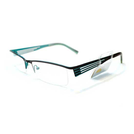 These half-rim eyeglasses feature a stainless steel front frame and acetate temples. The tapered temples are accented with cutout long slots for added appeal. The adjustable nose pads guarantee comfortable wearing.