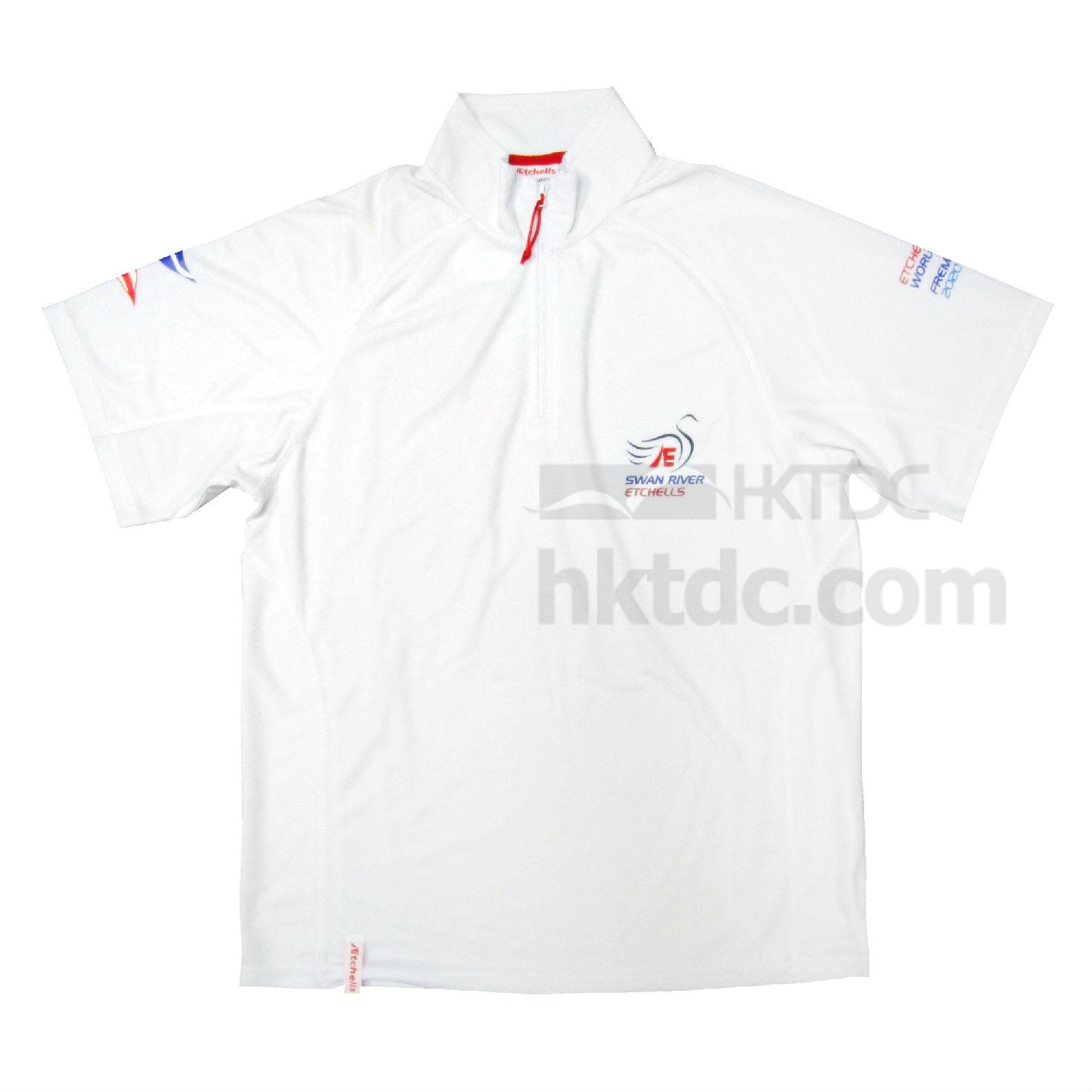 Providing all-day comfort with its moisture wicking silhouette, this short-sleeved polo shirt offers a comfortable fit to provide full range motion. It comes has a classic stand collar with half zip opening and is decorated with logos on the chest and sleeves. This polo shirt is perfect for sports activities and is suitable for wearing as a team uniform.