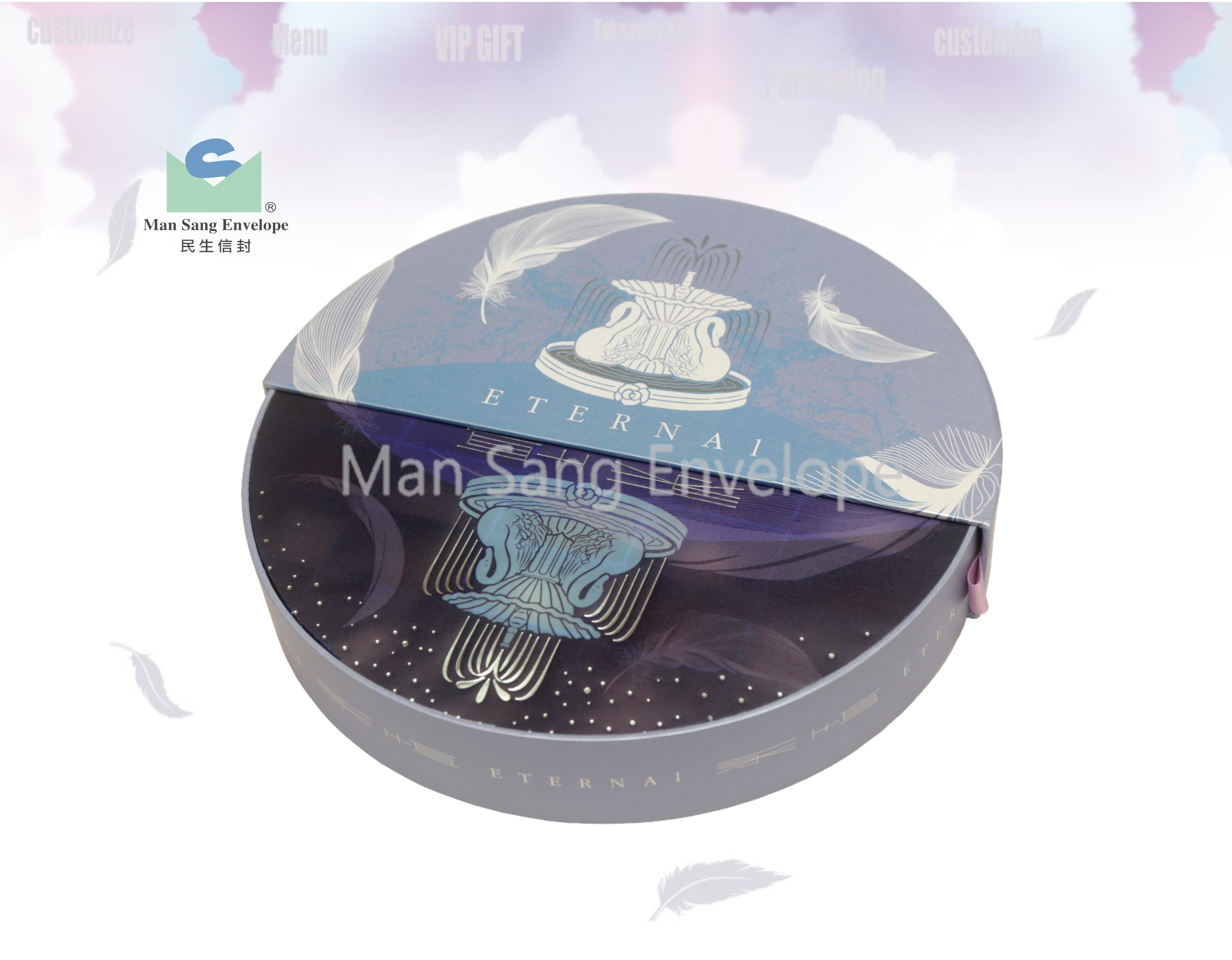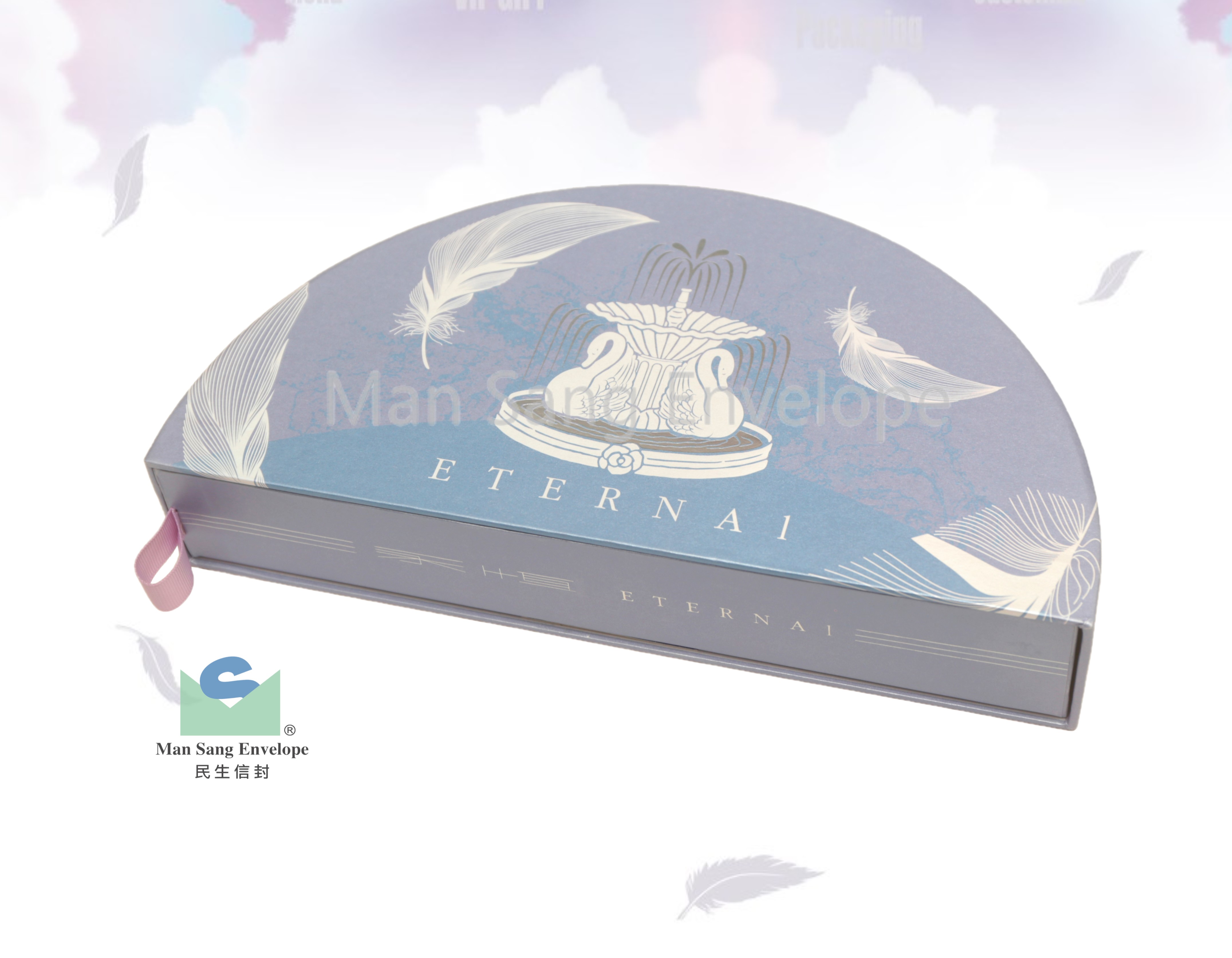 You can turn the box from half circle to whole circle for opening this box. We can design the corresponding packing box according to your business.
