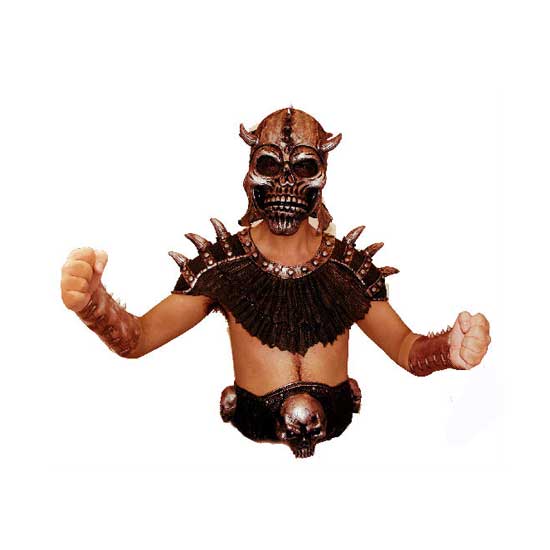 This Halloween costume turns you into an evil medieval warrior. The skull mask, shoulder armor and belt are manufactured with fine detail. This well designed costume set is ideal for re-use too.