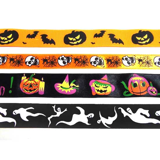 Featured here is a series of Halloween-themed ribbons printed with patterns like ghost and pumpkin. The quality ribbons boast brilliant colors and vibrant designs. They are great decorations for any Halloween party.