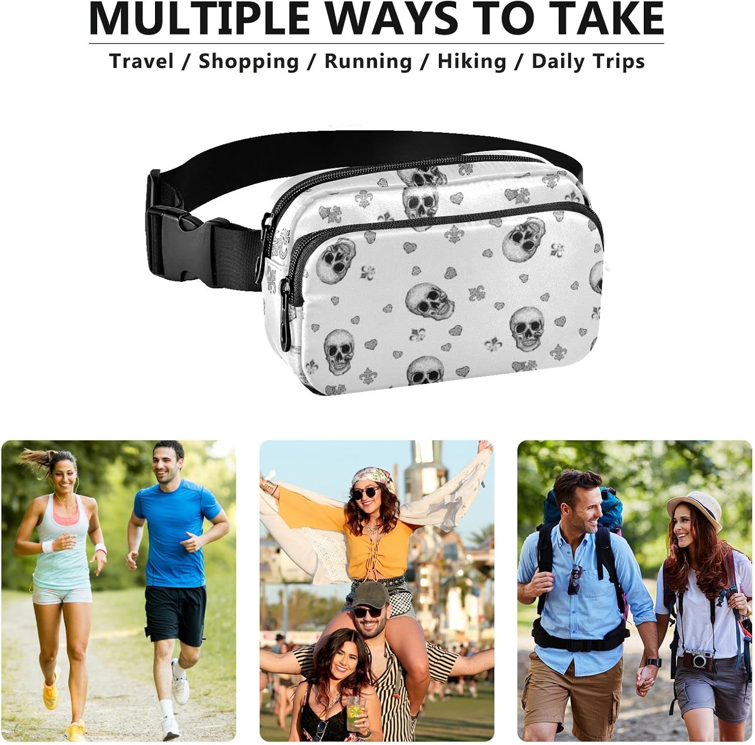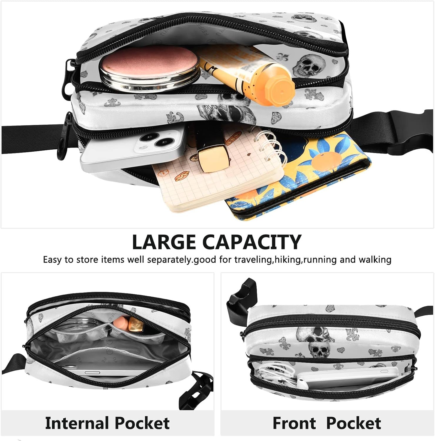 Halloween Skull Mardi Gras Fanny Packs for Women