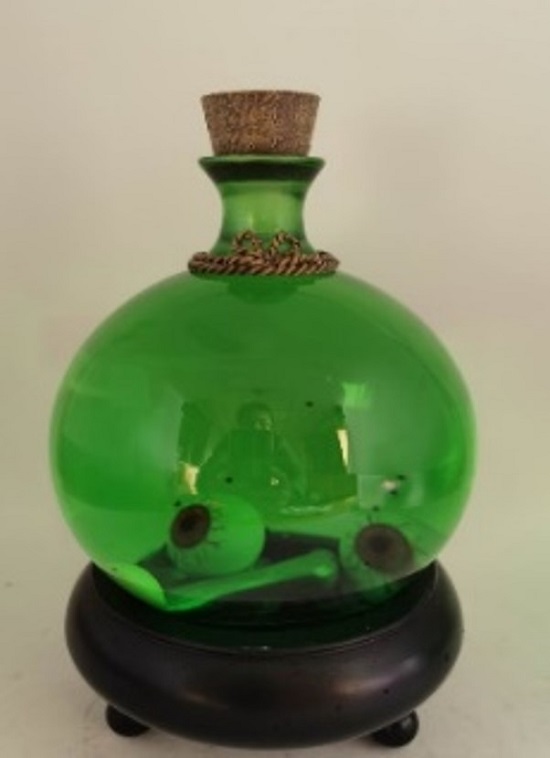 Polyresin/Glass eyeballs in green bottle waterglobe