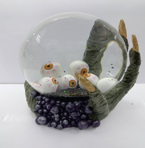 Polyresin/Glass eyeballs inside waterglobe with hand base