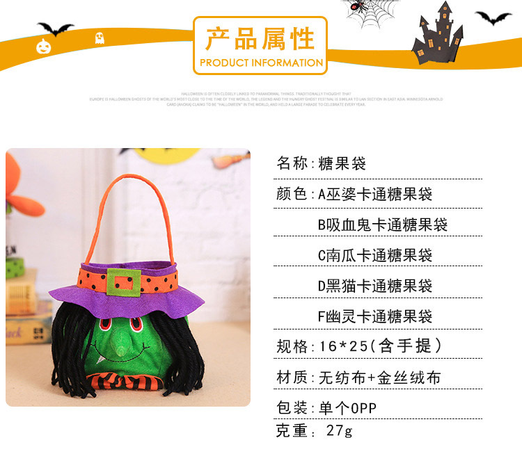 Halloween decorations tote bag children's holiday candy bag candy handbag party party dress up prop bag