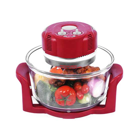 This halogen oven features 6 assorted functions: roasting, grilling, baking, broiling, defrosting and disinfecting. The user-friendly construction makes it easy for you to operate. This piece heats up and cooks quickly, 3 to 5 times faster than conventional ovens.