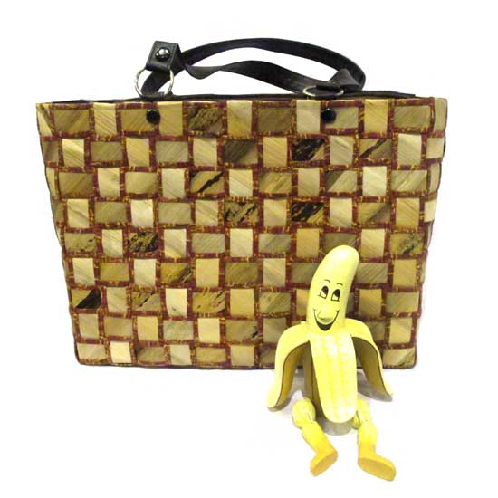 This hand bag is made of banana tree’s leaves for a unique touch. This chic hand bag comes with checked patterns for a glamorous accent. It features two handmade handles for easy and convenient carrying.