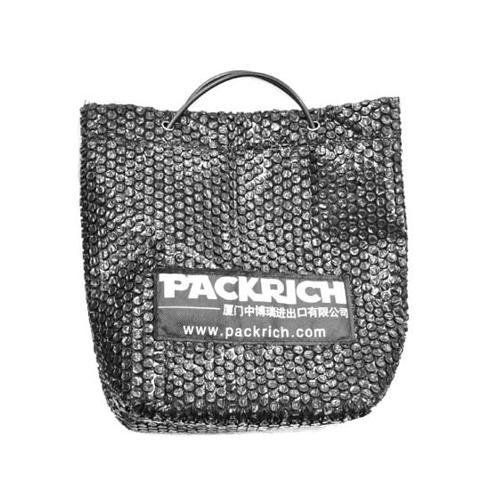 This hand carrying bag in black features allover shiny round decorations for an exquisite look. It comes with a rectangular area that can print your logos for promotional use. The durable handles ensure long time service.