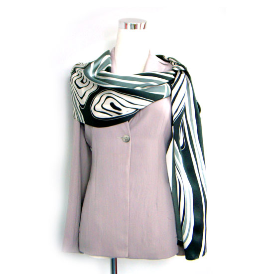 This eye-catching hand drawn satin silk Batik neckerchief is a graceful addition to your look. It features abstract patterns in black and white that are modern and classy. This well crafted neckerchief complements your work clothes and casual garments nicely.