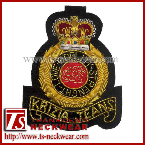 Hand embroidery badges, cap badges, fashion badges, wire badges, bullion wire badges, garment trims.