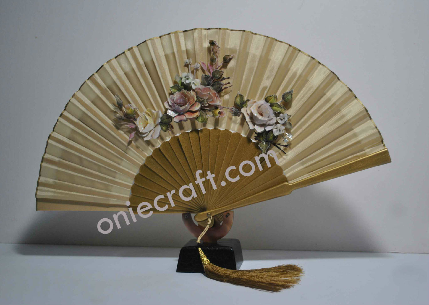 Cool down your guests in the summertime with this artistic hand fan. This hand fan features paper ornaments of flowers on the fan leaves. The tassel provides added aesthetics for the fan. Light and charming, this hand fan is especially suitable for wedding parties and other outdoor events.