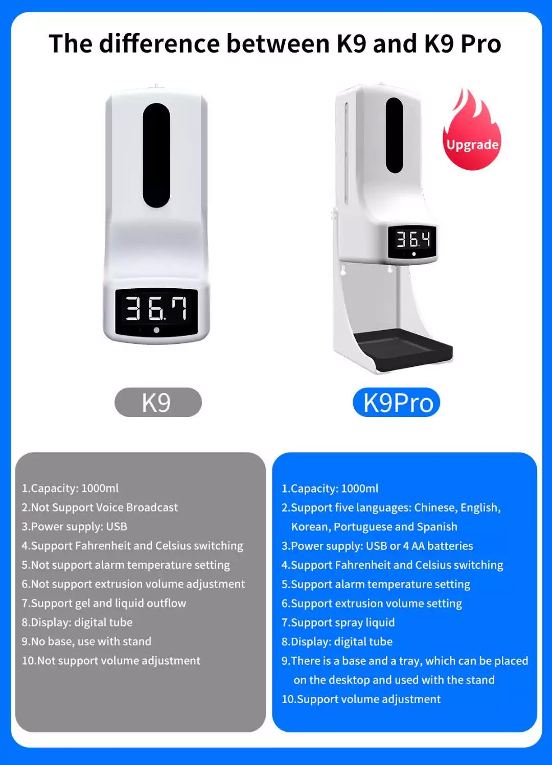 hand free Automatic alcohol spray thermometer K9 pro soap dispenser
