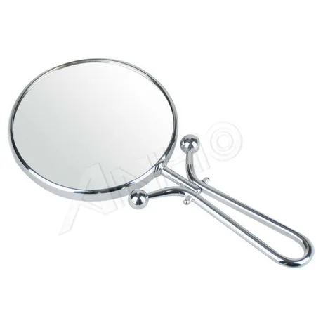 This hand-held mirror surely is a must-have item for every lady. The frame is constructed of stout iron material with a chrome-plated finish for a sheeny appearance. The two expanded knobs at the tips of the hollow handle further add values to the makeup hand mirror. Check it out at once.