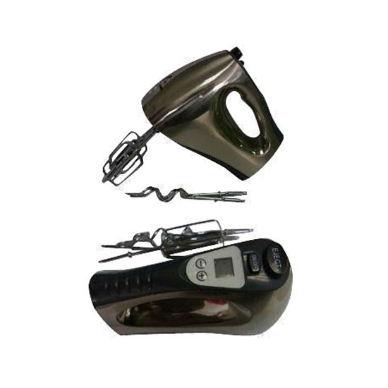 This is an electric handle mixer with an LCD display. It is designed with a turbo power switch for short term updating. This mixer comes with 2 mixing paddles and 2 dough hooks which are made of stainless steel.