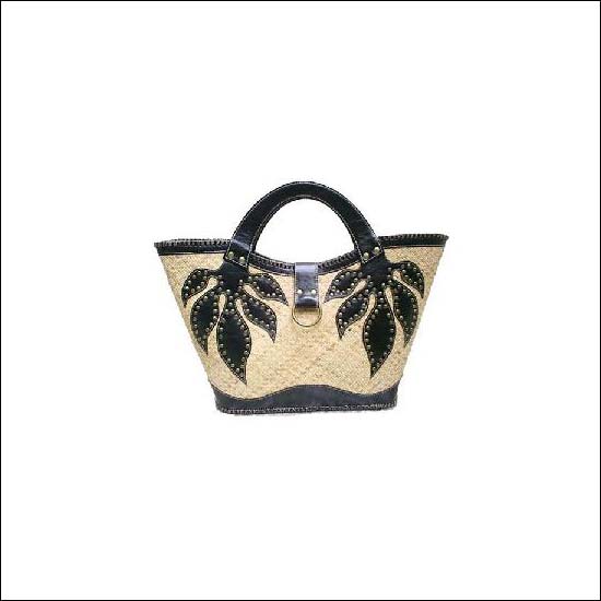 • The handbag is made of rattan palm and black leather
