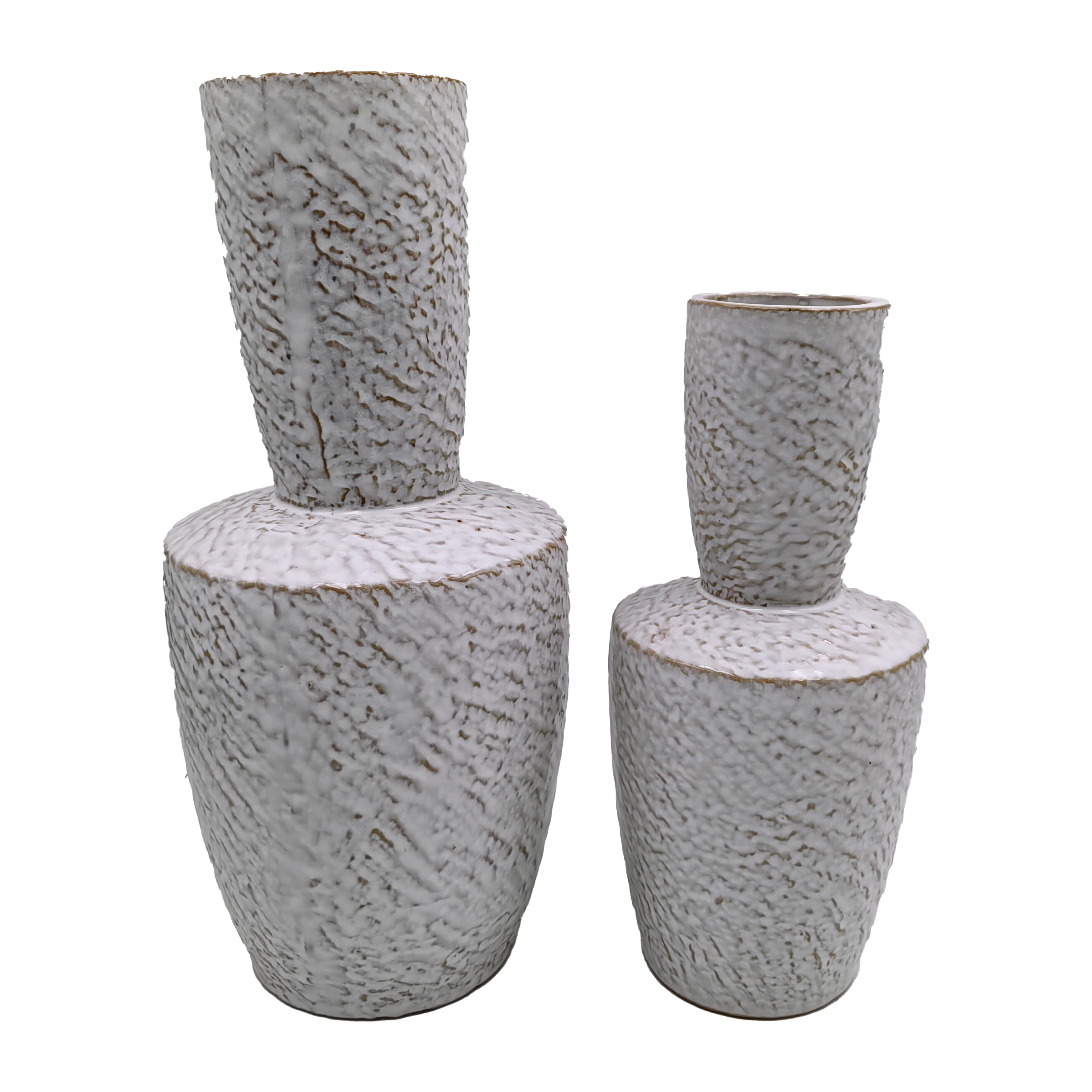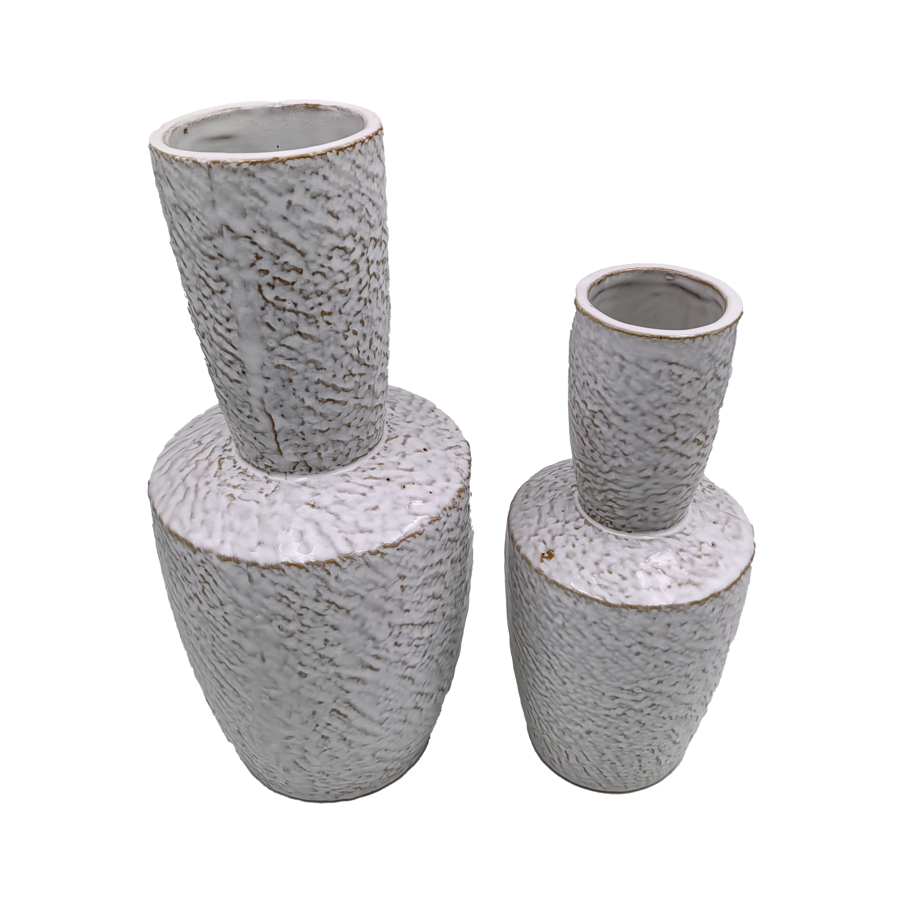 Handcrafted Rough Texture Ceramic Bud Vase | White Pottery Decorative Vase