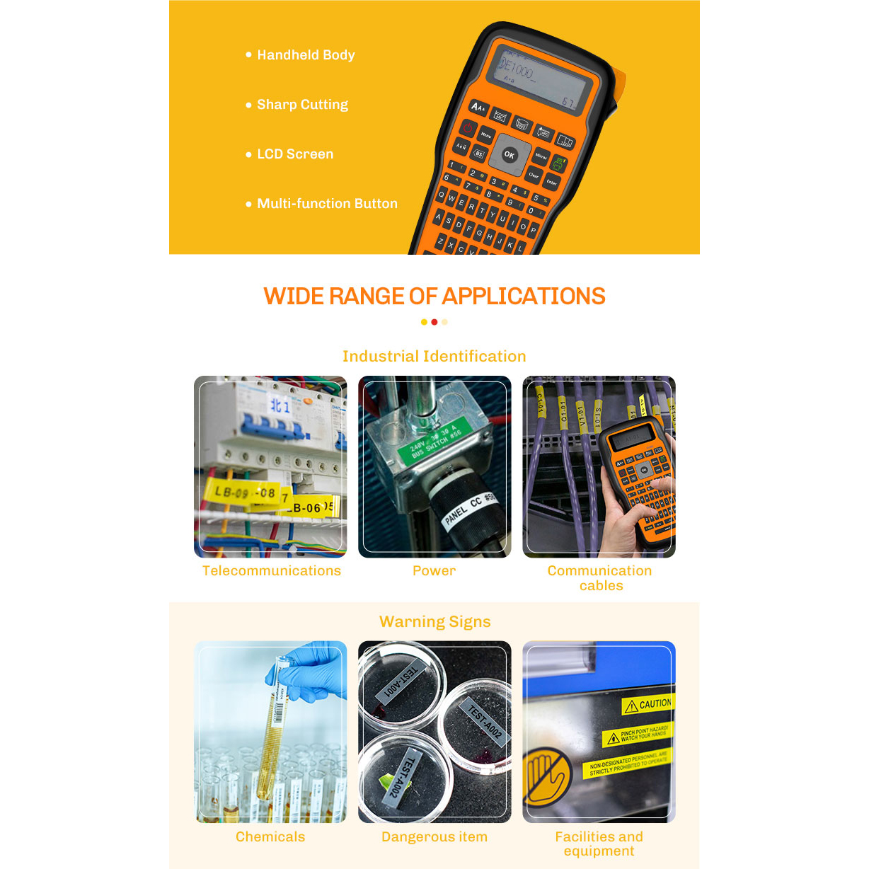 A handheld printer for making labels quickly and simply. Supporting over 100 colours, multiple font sizes and styles, 22 languages, and a label width of 6/9/12mm, the versatile printer that meets various printing demands is suitable for a variety of occasions such as industrial identifications, warning signs, etc. Comes with a compact size and smooth cutting, the portable machine is comfortable and easy to handle.