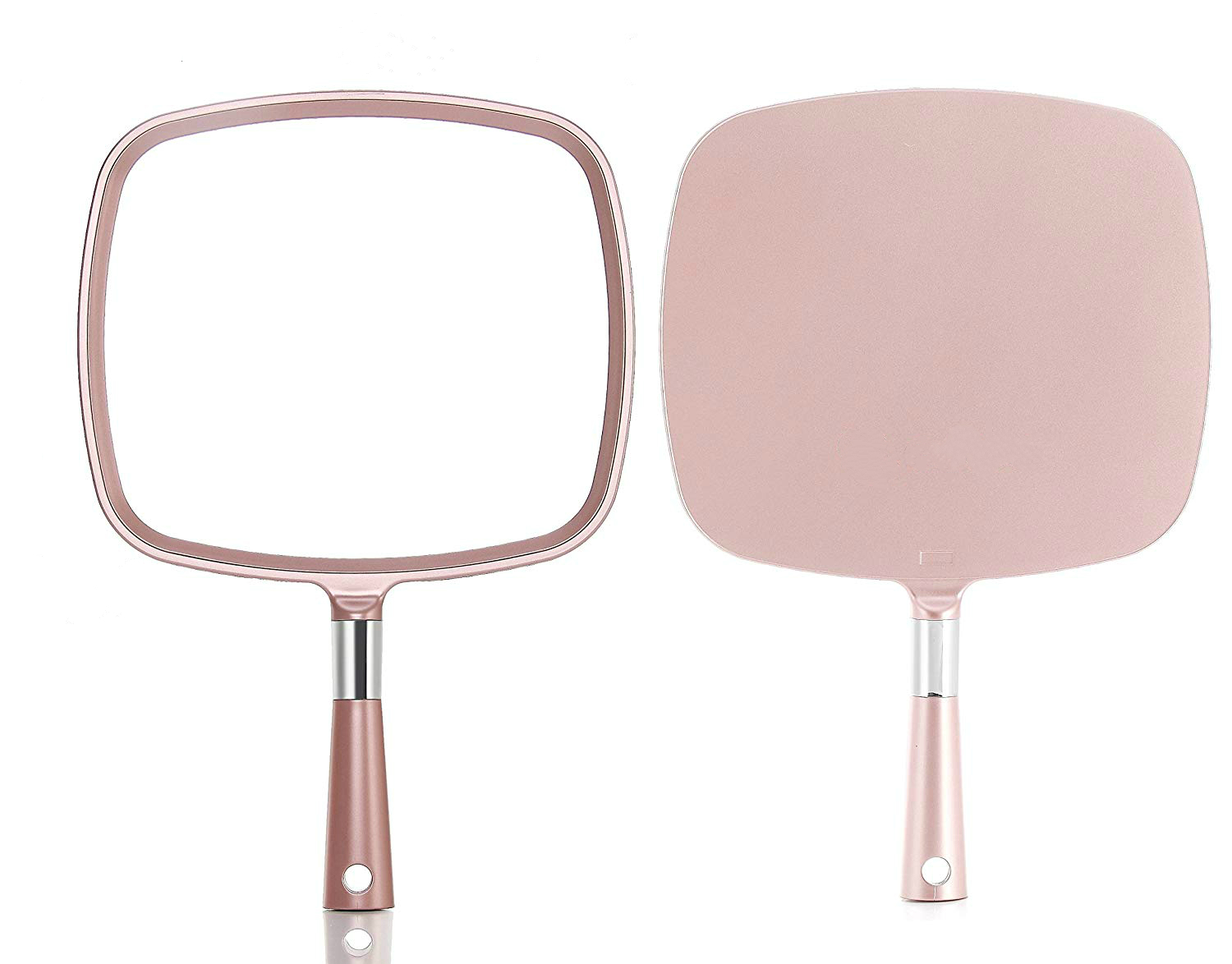Our handheld mirror comes with not only a large size but also lightweight. Its perfect size provides a large viewing area to apply in your makeup or use other grooming items. So easy to hold and look your backside without having to rotate.
