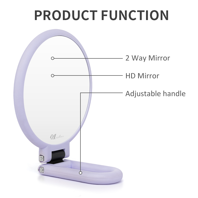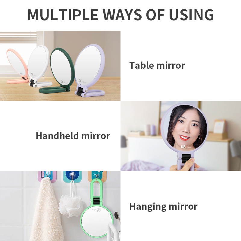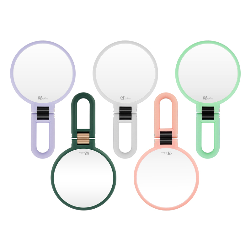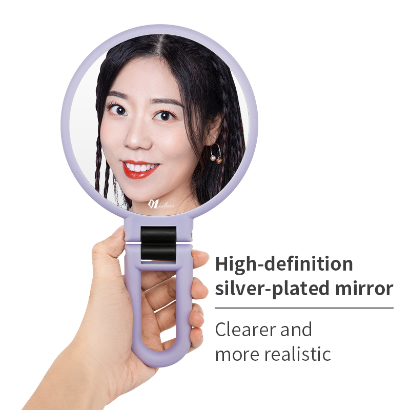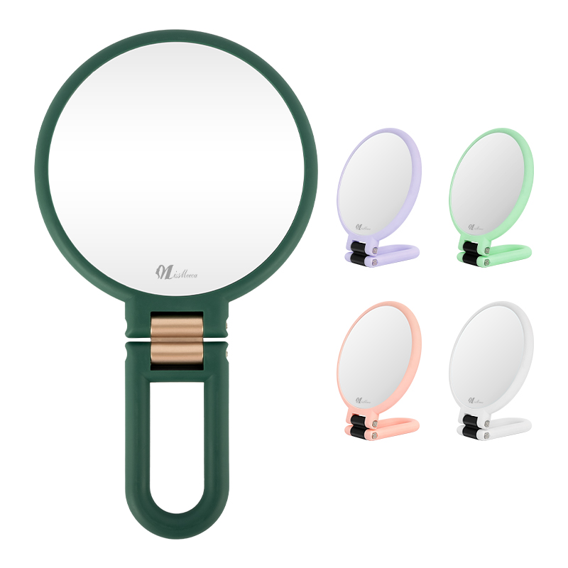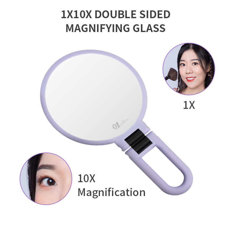 Double-Sided Handheld Mirror — Features a high-definition flat mirror for true-to-life makeup application and skincare precision, plus a 10x magnifying mirror for detailed eye makeup, eyebrow grooming, and close-up tasks. Ergonomic handle ensures steady grip; foldable design saves space—perfect for travel and business trips. Made from premium ABS material for durability and drop resistance.