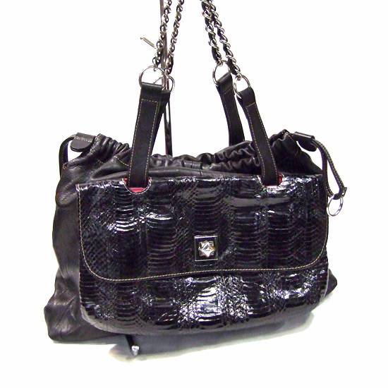 These stylish handbags feature with a drawstring top and a flip open respectively. Their handles are special designed with leather straps and metal chains. Besides, the handbag on the front is engraved with striped patterns. They are both suitable for casual and parties uses.