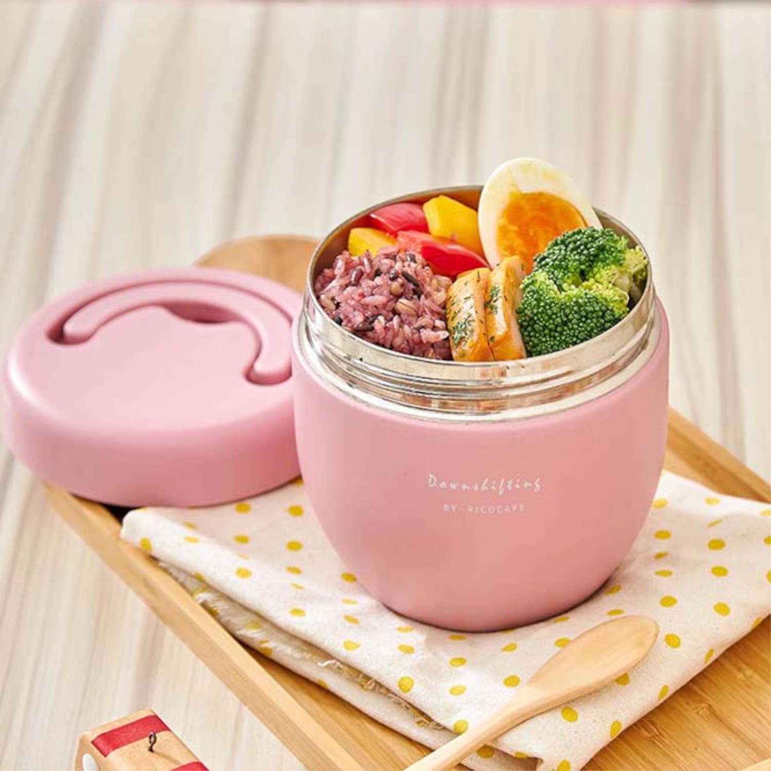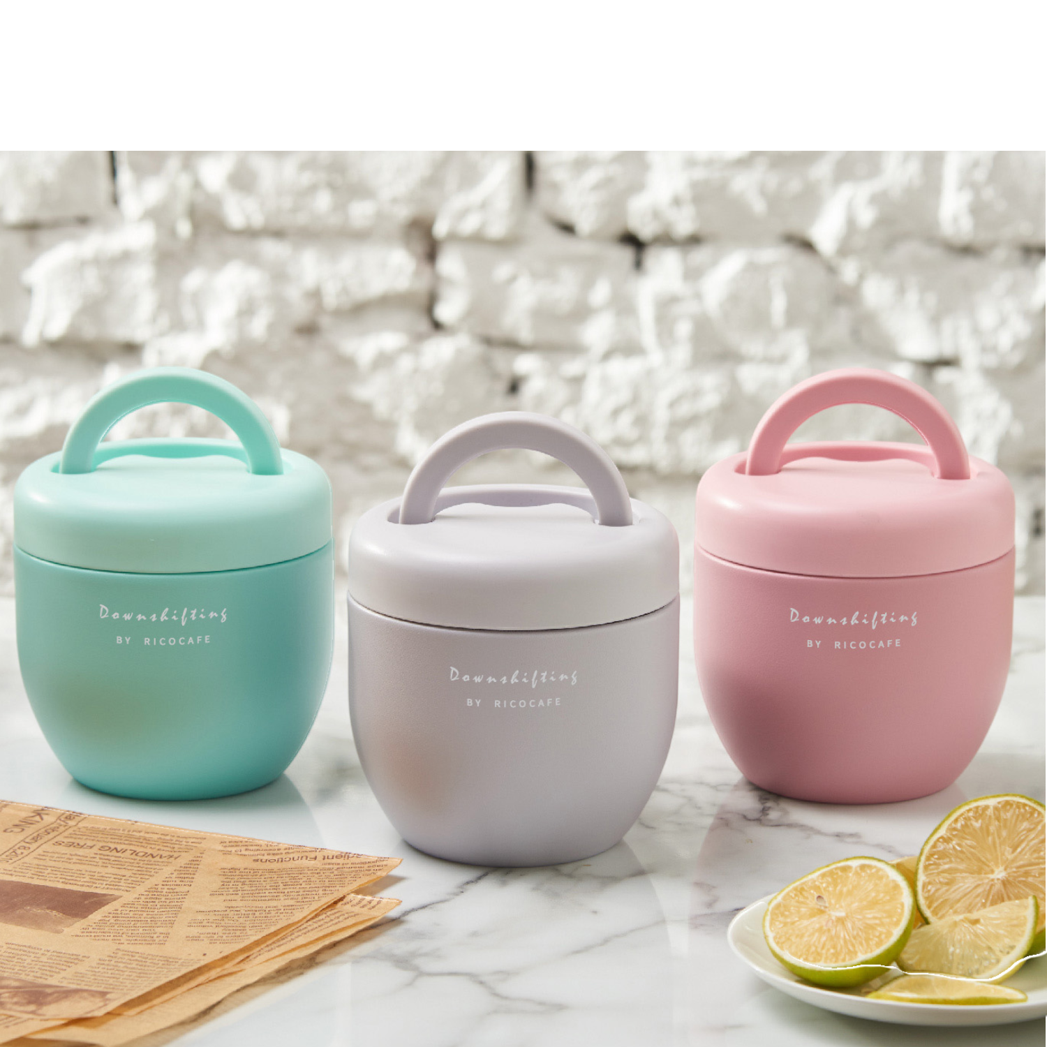 Portable food bowl perfect for maintaining the temperature of soup, stew, gruel, ice cream, baby food.