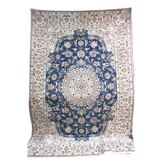 This handmade carpet features a sophisticated and tasteful design. Made from wool and silk, the carpet showcases scrupulous craftsmanship with great detail. The luxurious carpet will add a touch of refinement to your home decor.