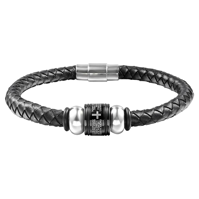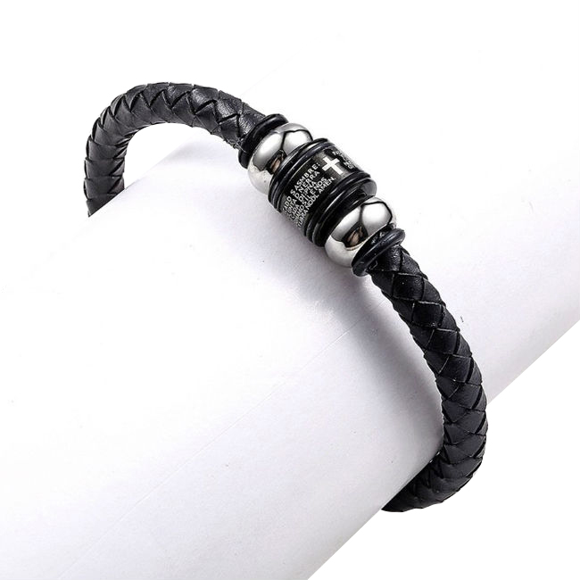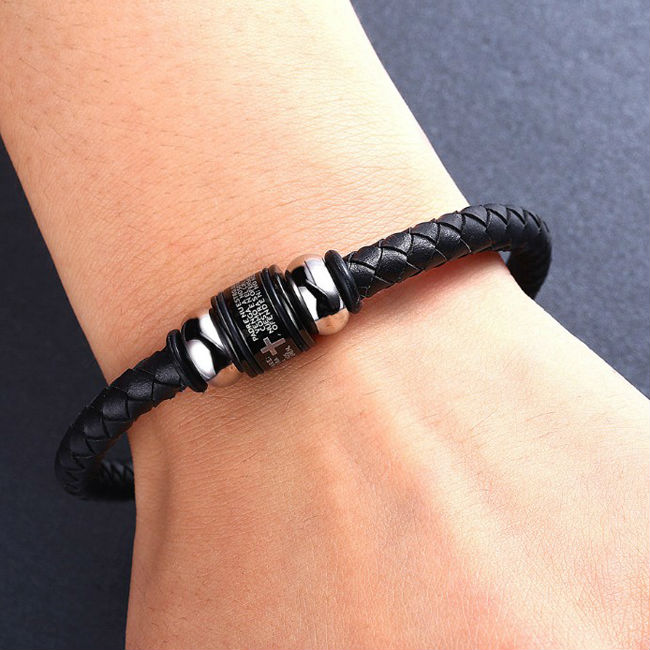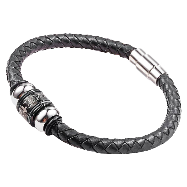 Handmade Cross Genuine Real Leather Stainless Steel Bracelet for Men