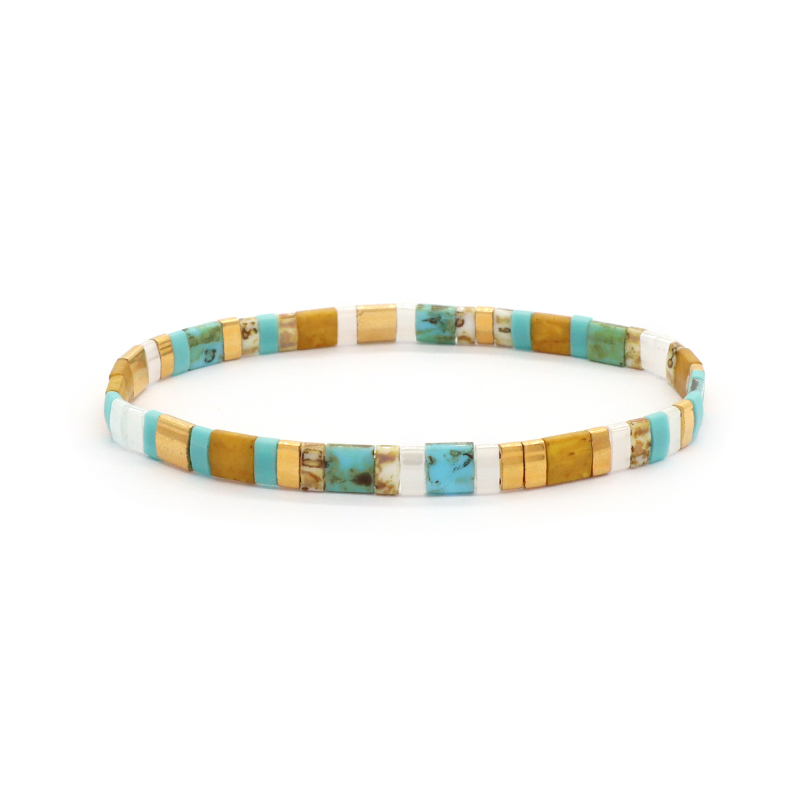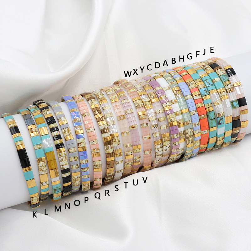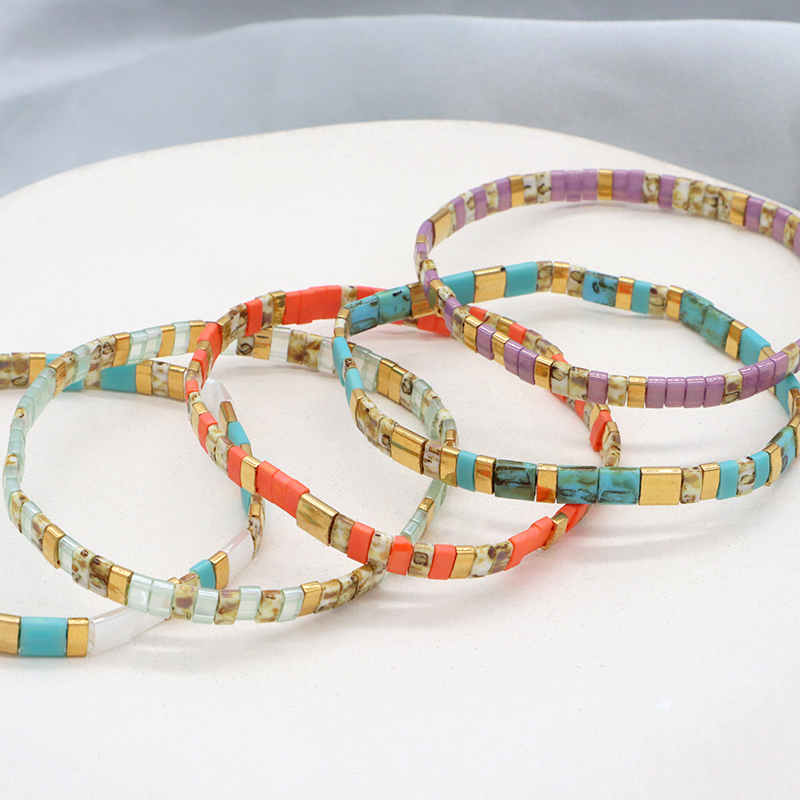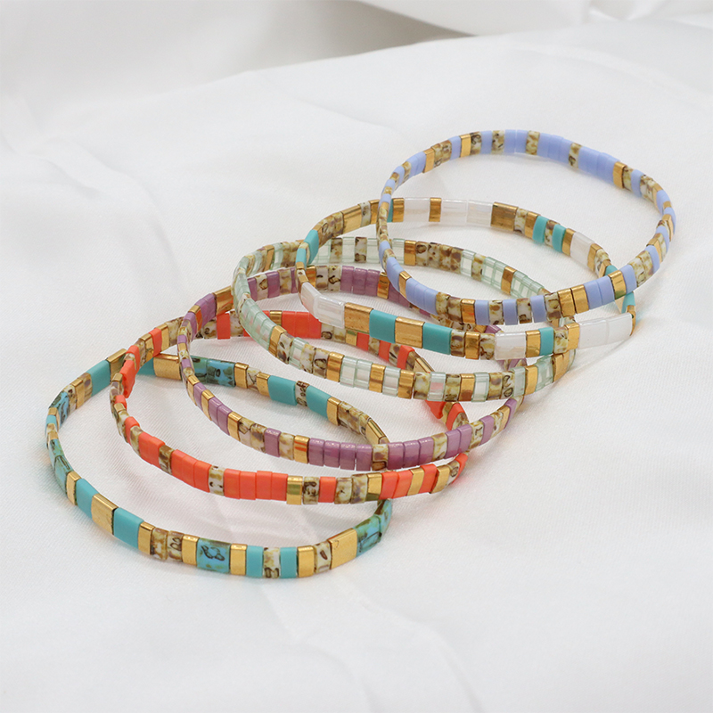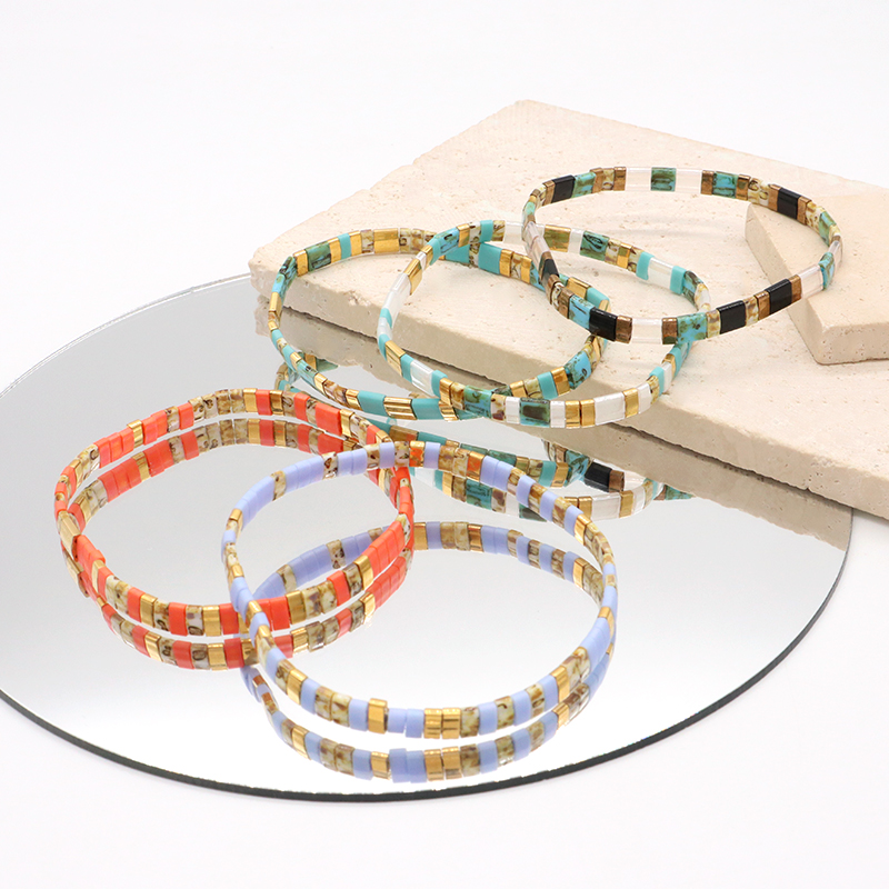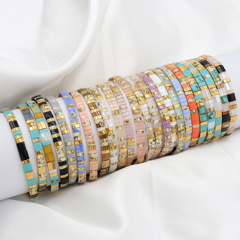 Handmade Custom Boho Colorful Miyuki Jewelry Elastic Flat Tila Miyuki Bracelet