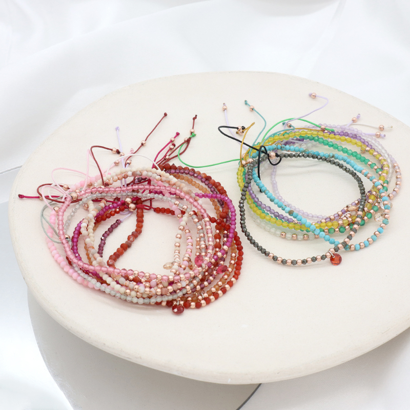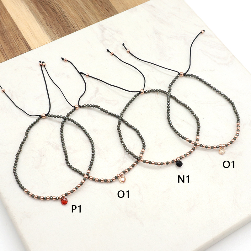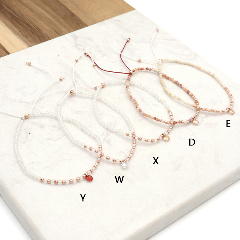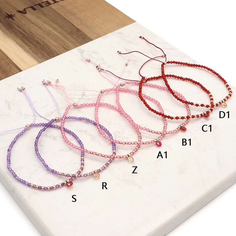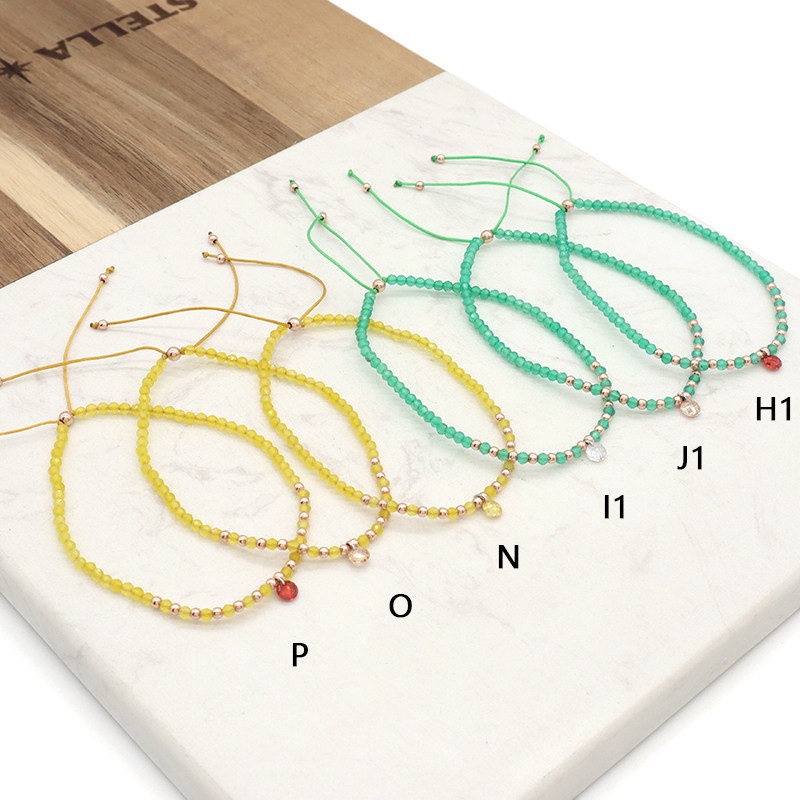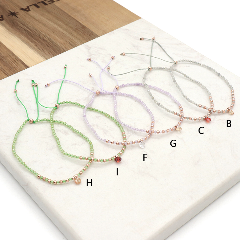 Handmade Custom OEM Adjustable Women Macrame Gold Plated 925 Sterling Silver CZ Charm Natural Stone Bracelet