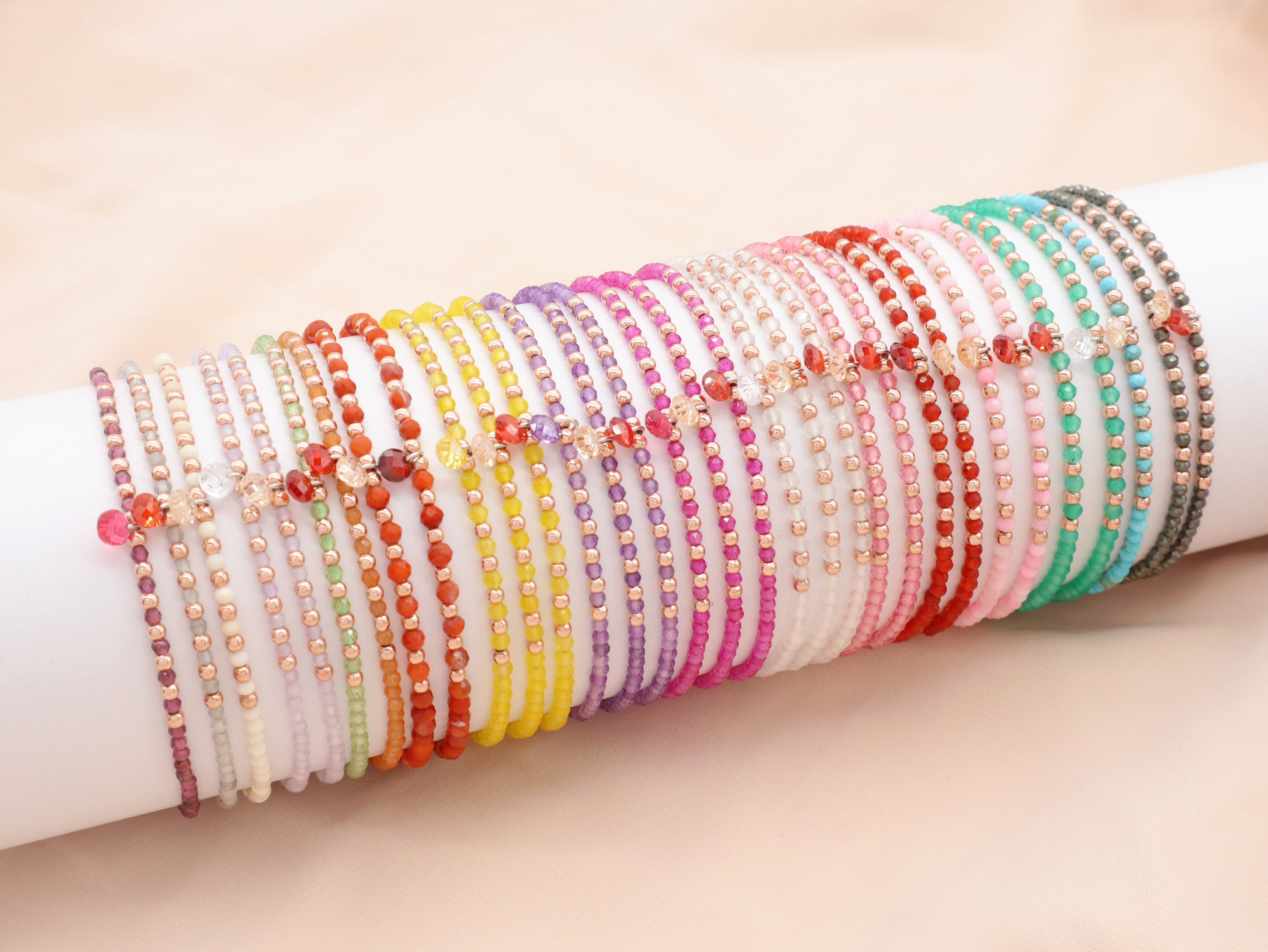 Natural Stone Beads + 925 Sterling Silver + CZ Charms