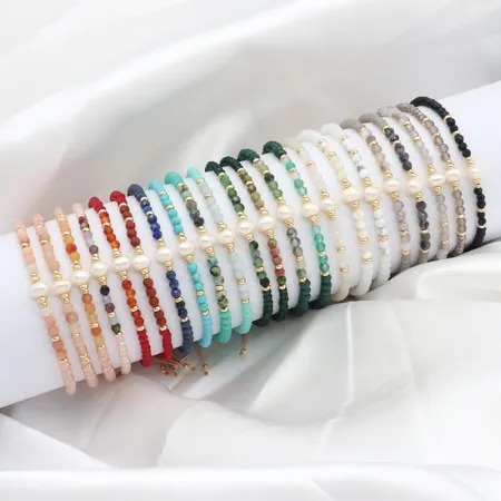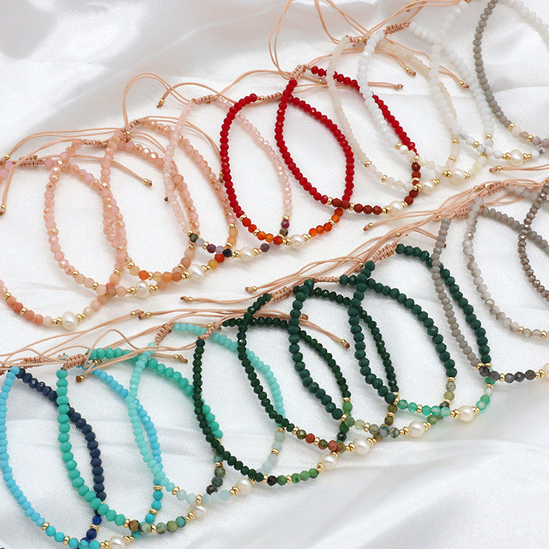 Handmade Fresh Water Pearl Pedant Gemstone Glasscrystal Natural Stone Beads Bracelet