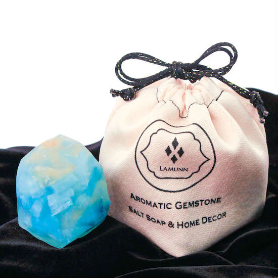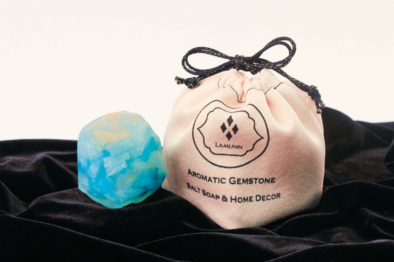 Bring an ocean breeze to your bathroom with this refreshing soap placed on the sink. This aromatic salt soap gently exfoliates the skin by lifting away dead skin cells, revitalizing skin with natural radiance. Rendered in an aquamarine-like design, this handmade soap enhances your daily routine with visual enjoyment.