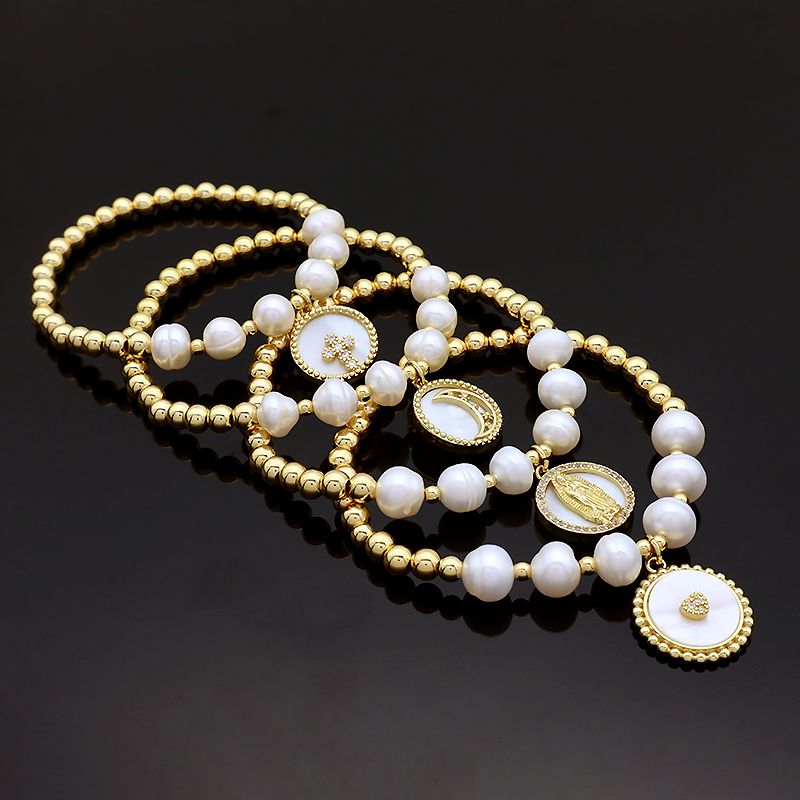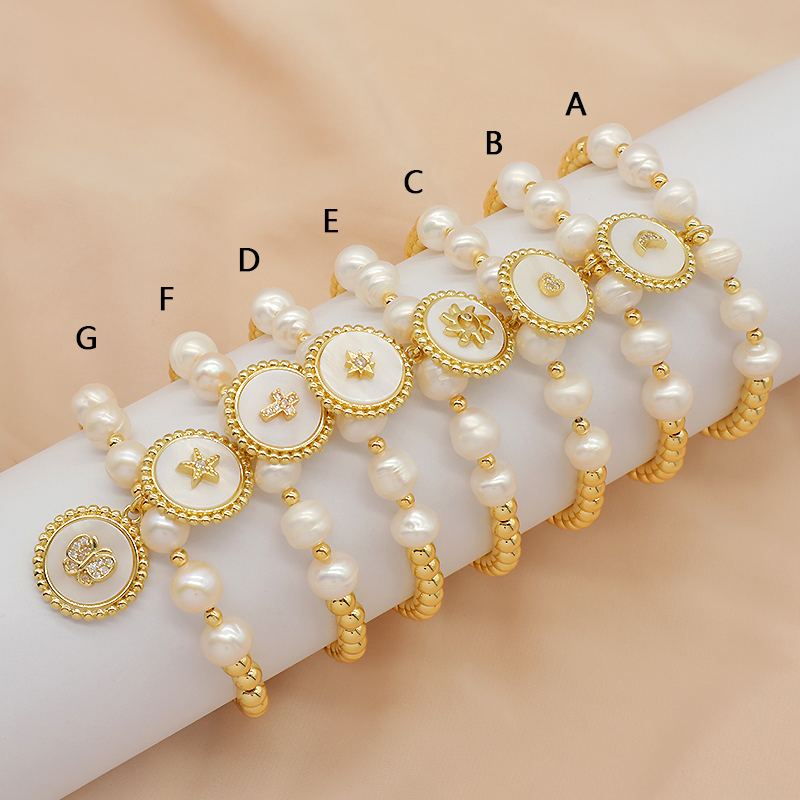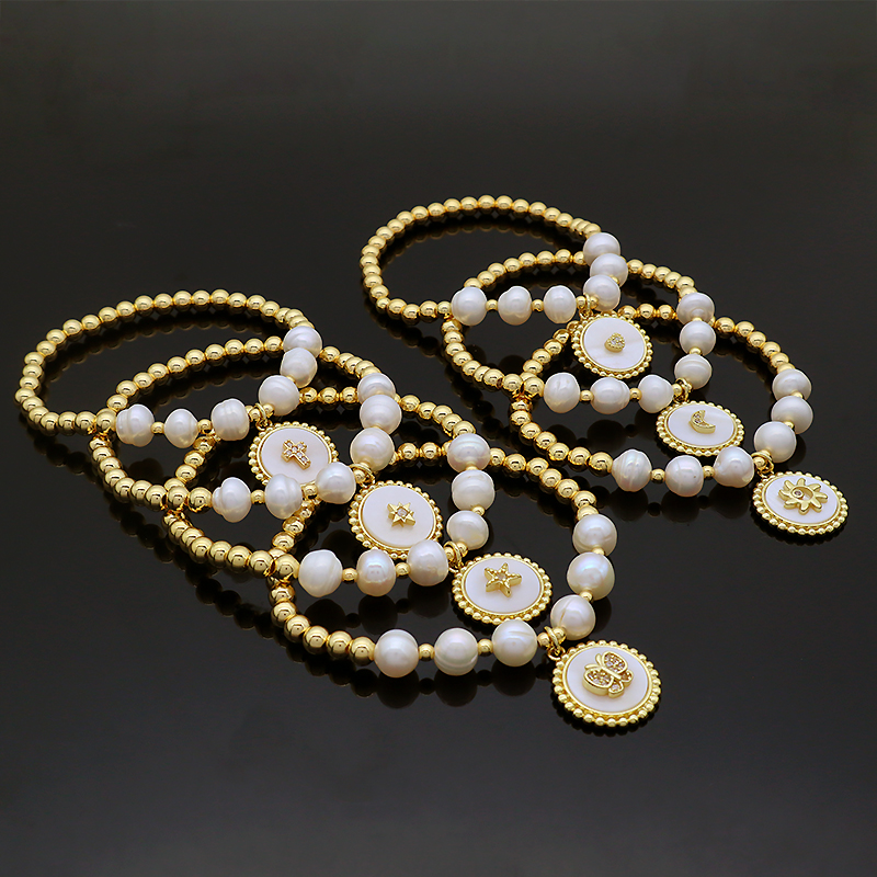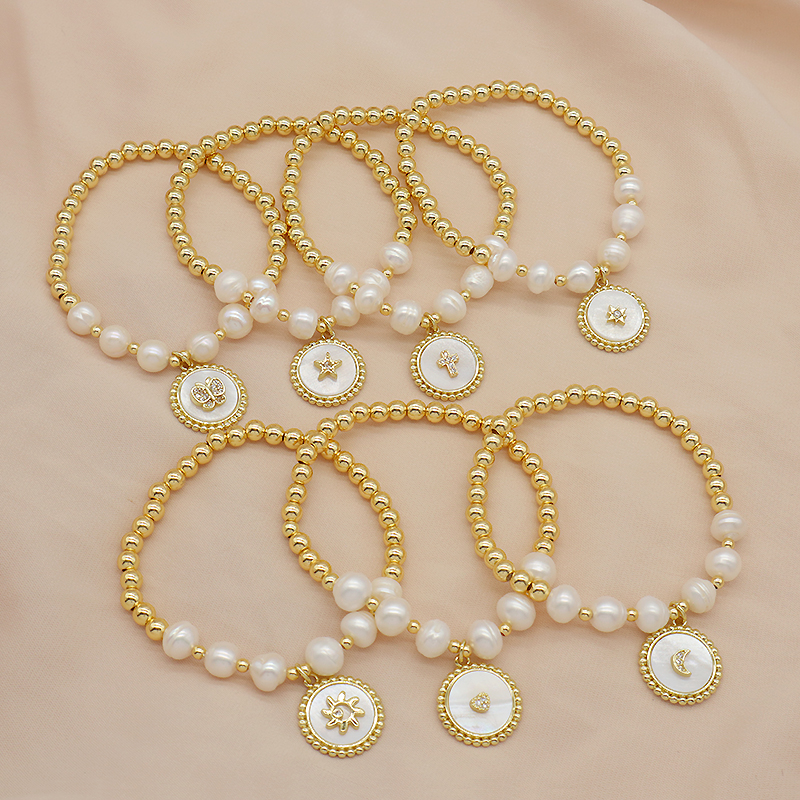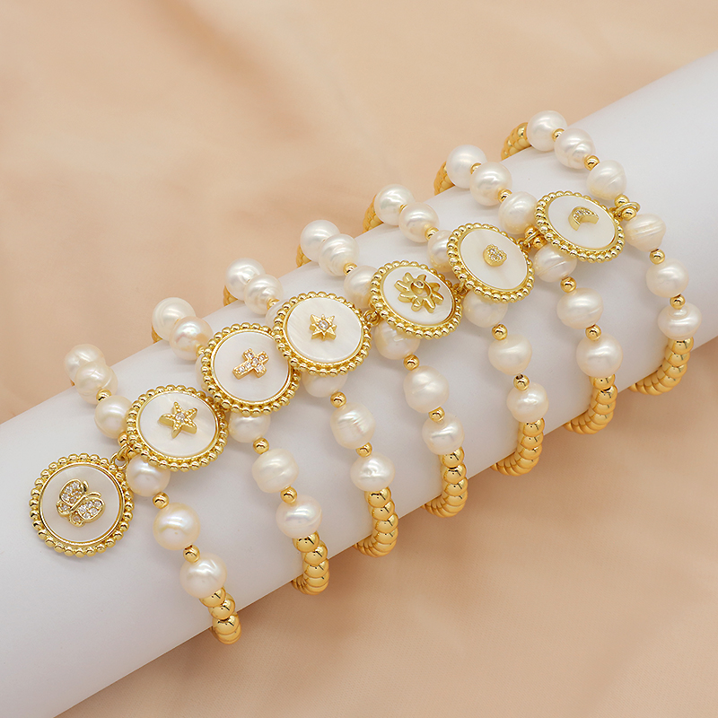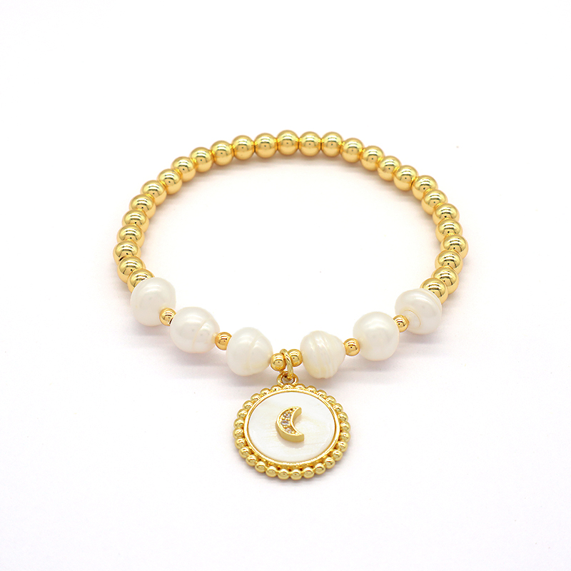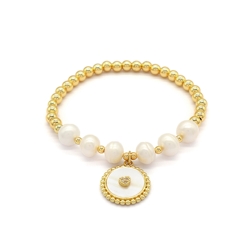Handmade OEM Brass Beads Shell Pendant Fresh Water Pearl Bracelet