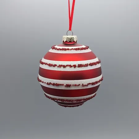 • Item Name: Handmade Red and White Glass Christmas Ball Ornament - Striped Holiday Decoration with Glitter Accents for Tree Hanging