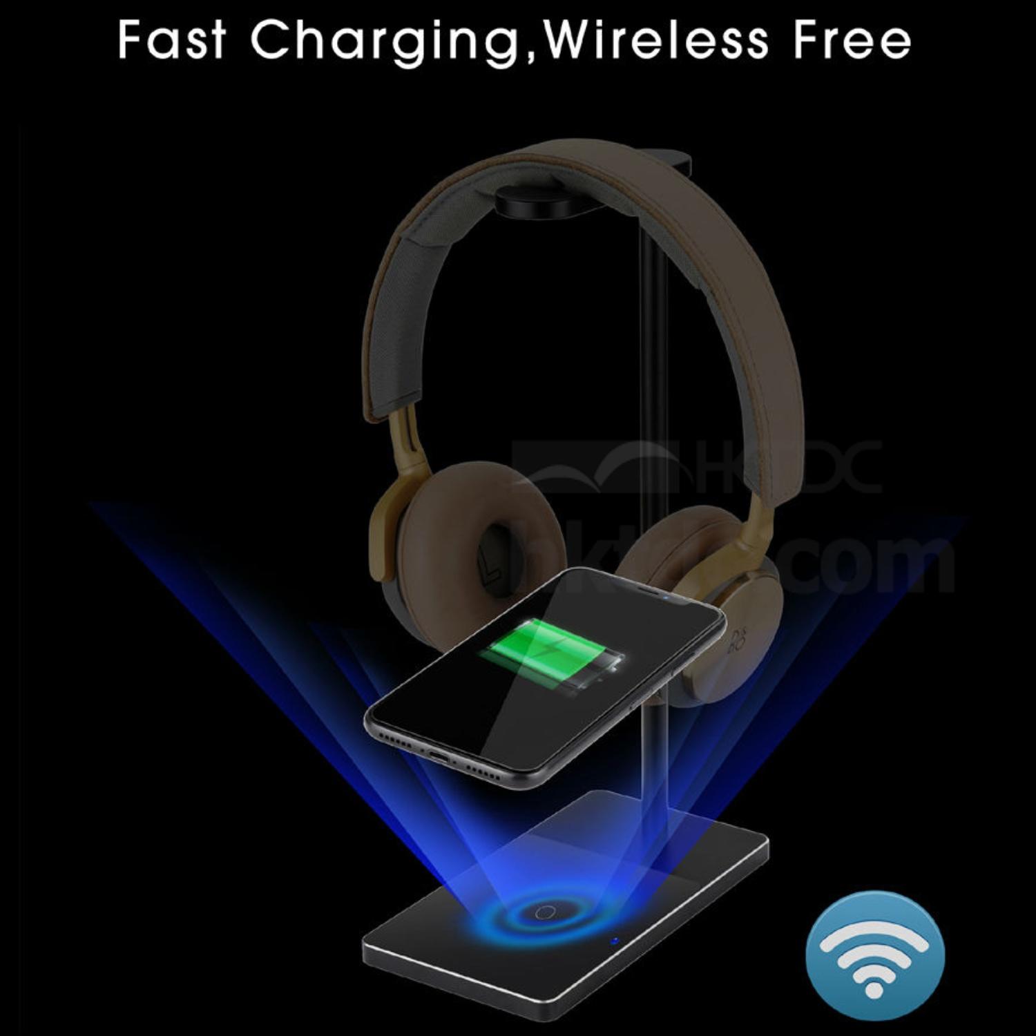 The gaming headset holder about 10.6 inches height, 5.9 inches length, 3.25 inches width, it is super easy to bring along wherever you go-it's small, light, and most importantly, unique fashion style. A wireless charger for your smartphone, very convenient for your daily time at home or office