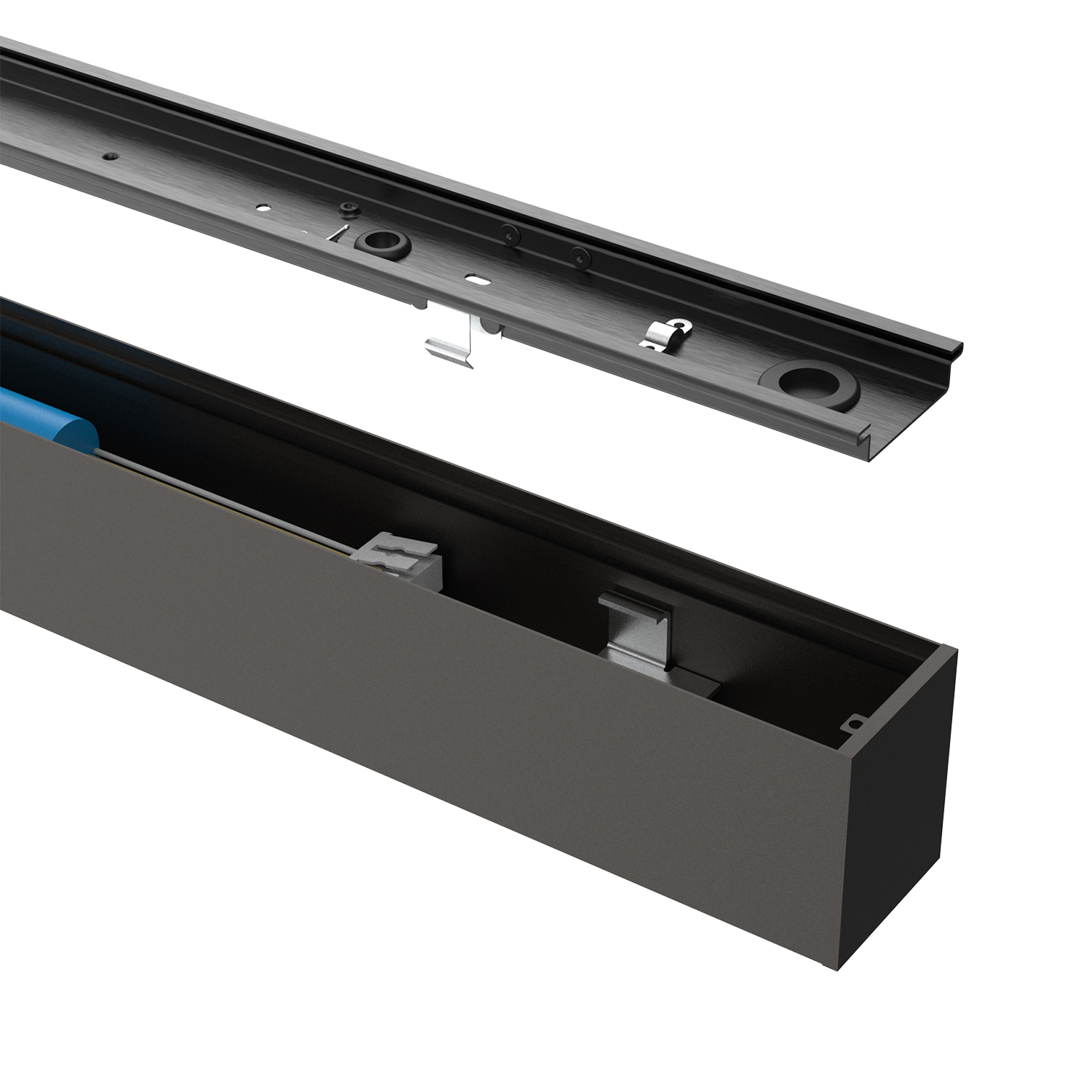- Design: Slim housing (60mm wide, 75mm high) with openable top side for EM pack and DALI driver integration.