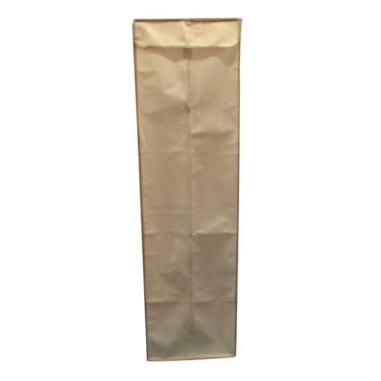 This is a hanging storage organiser which is for storing clothes. It is hung by a metal tube and has a single cover for keeping the goods away from dust.