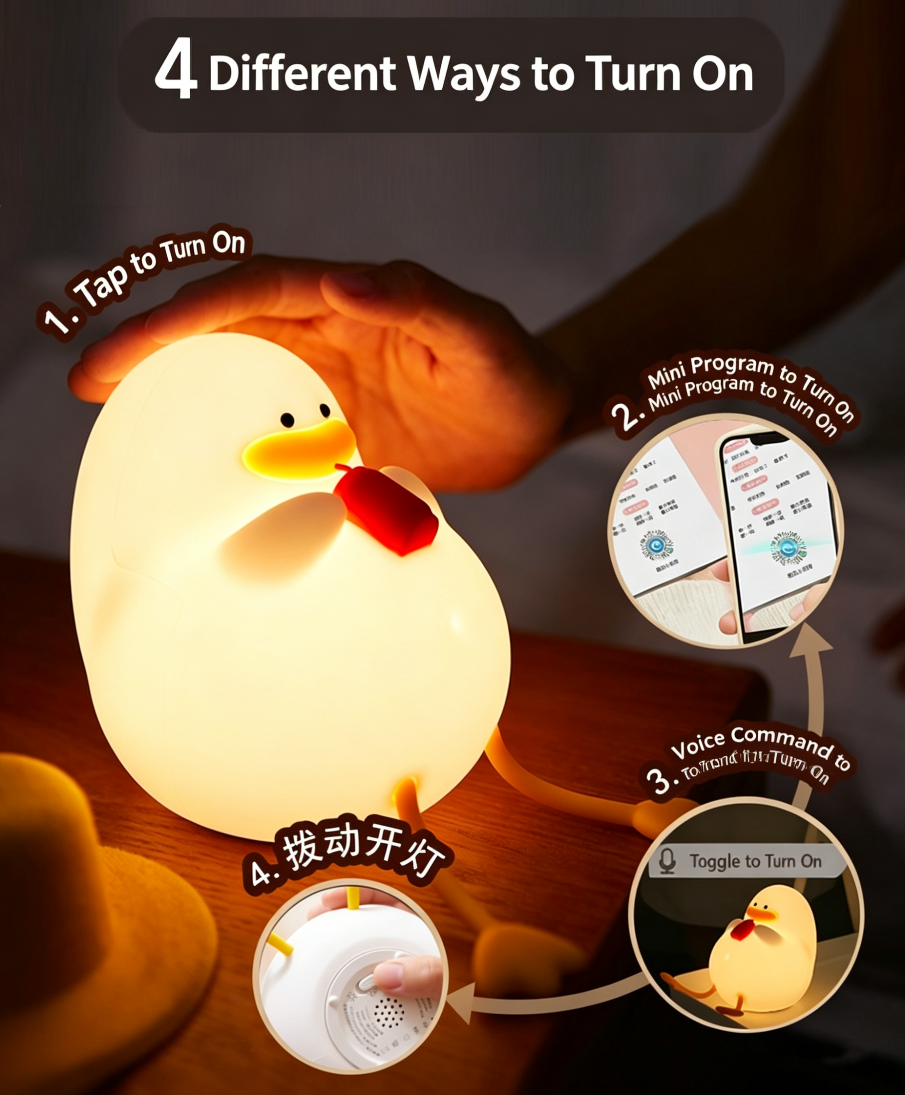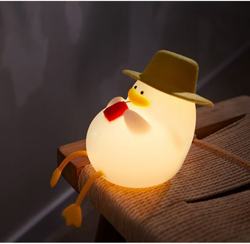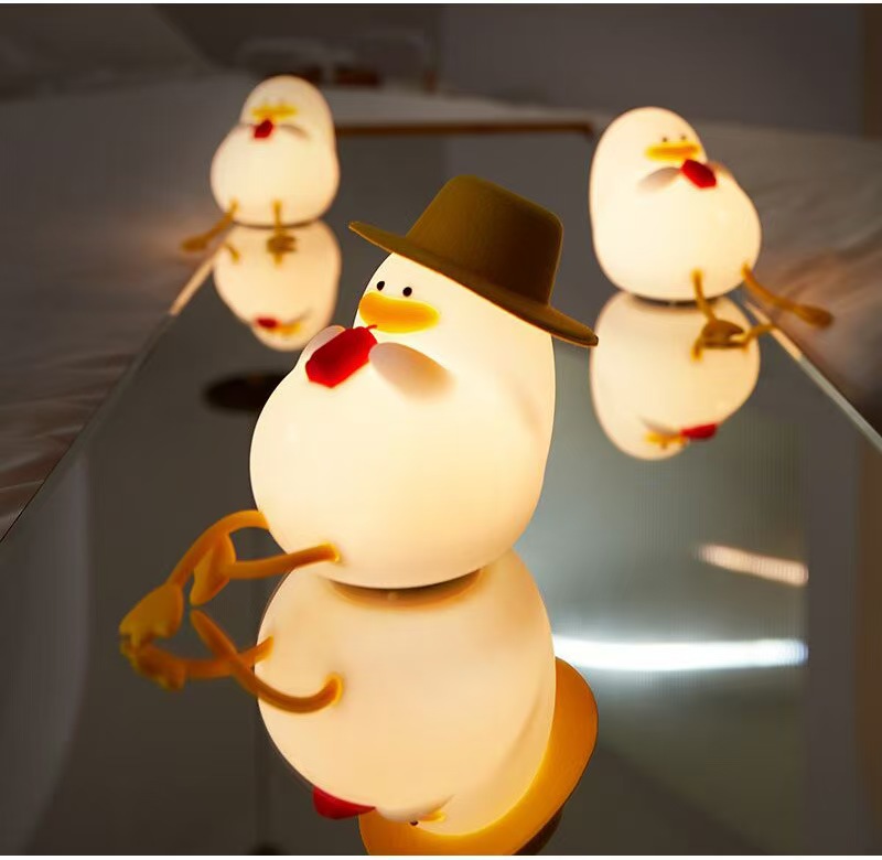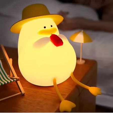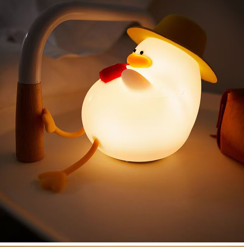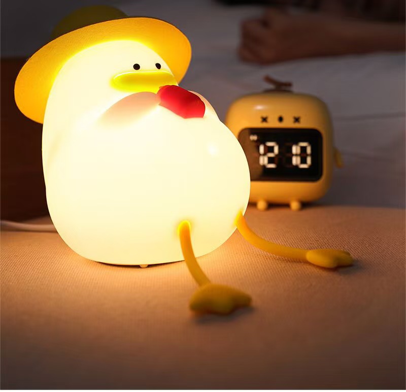 New Happy Duck Silicone Night Light, Tap to Turn On, Bedside Creative Gift Silicone Night Lamp