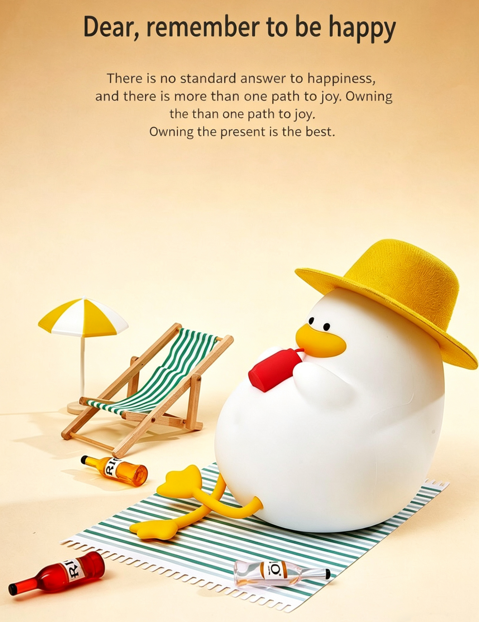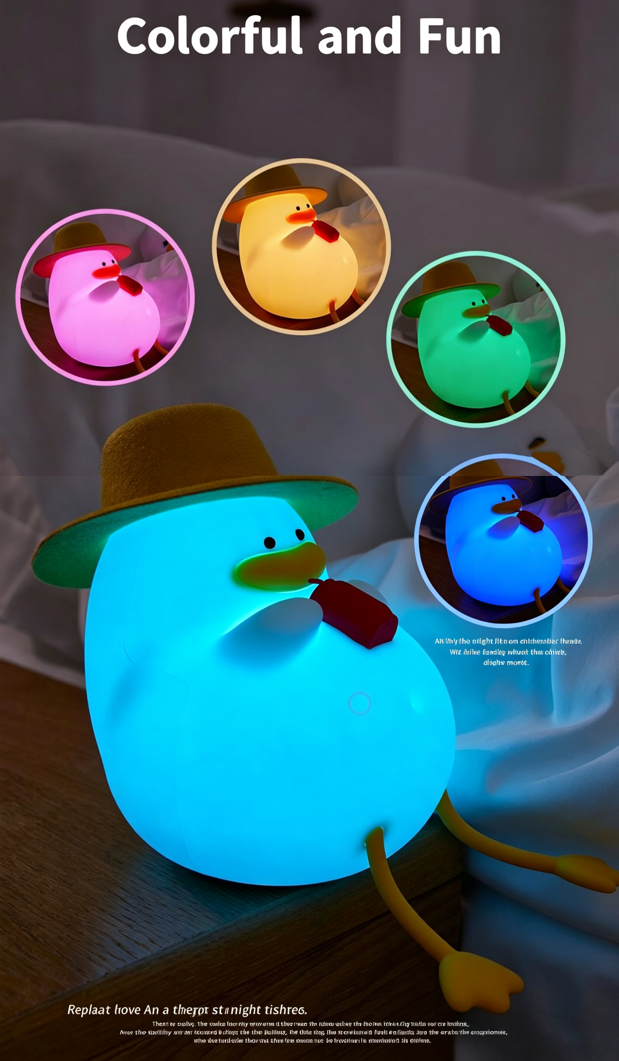 Elevate your cozy space with this Happy Duck Silicone Tap Night Light! Featuring an adorable duck shape and soft skin-friendly silicone material, this portable rechargeable lamp delivers gentle glowing light for bedrooms, nurseries, daily decor and holiday gifting. It creates a warm lovely atmosphere for sleeping, relaxing and accompanying kids who fear the dark.
