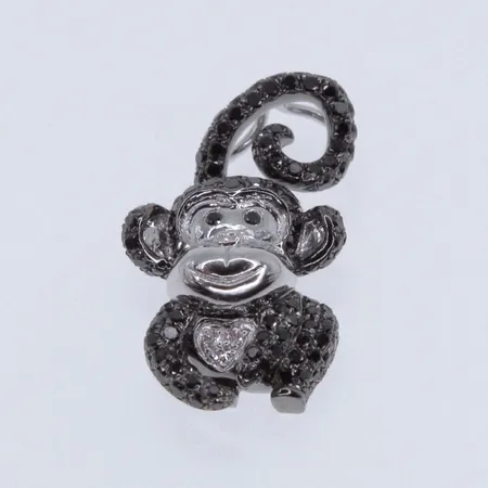 • Happy monkey pendant specially designed for the Year of the Monkey, 18k white gold set with white and black diamonds