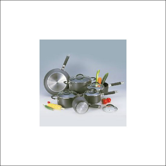 This cookware set features hard anodized aluminum material with induction base. Available in assorted sizes and shape, this aluminum cookware set allows you to bring variety to your kitchen. With it easy maintenance specialty, this cookware set is easy to use and wash.